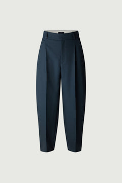 EVA es una blusa asimétrica en tela de lana color petróleo, de corte amplio y cuello abierto. Bajo de dos paneles, mangas con dobladillo. Corte arquitectónico y cuello barco ajustable para un estilo sofisticado.