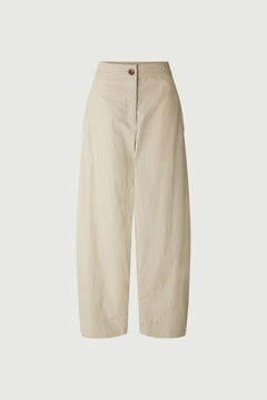 FELICITE es una blusa en popelina de algodón orgánico color blanco roto. Su corte amplio y cuello alto con botones aportan un aire sofisticado. El cinturón extraíble permite llevarla ajustada o suelta, realzando la silueta con elegancia.