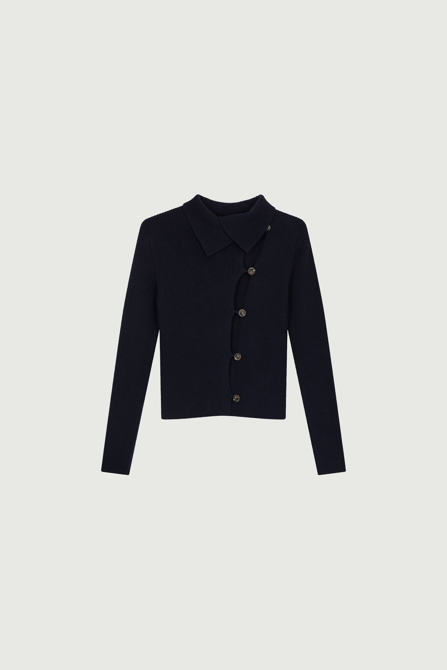 WIMY es un cárdigan ajustado en punto acanalado. Numerosos botones permiten un cuello modulable, para llevarlo cerrado o abierto. Se puede llevar como un cárdigan directo sobre la piel o en superposición como una chaqueta fina. Forma parte de nuestra línea bordada del monograma "S". Esta versión es de lana merino fina y cálida.