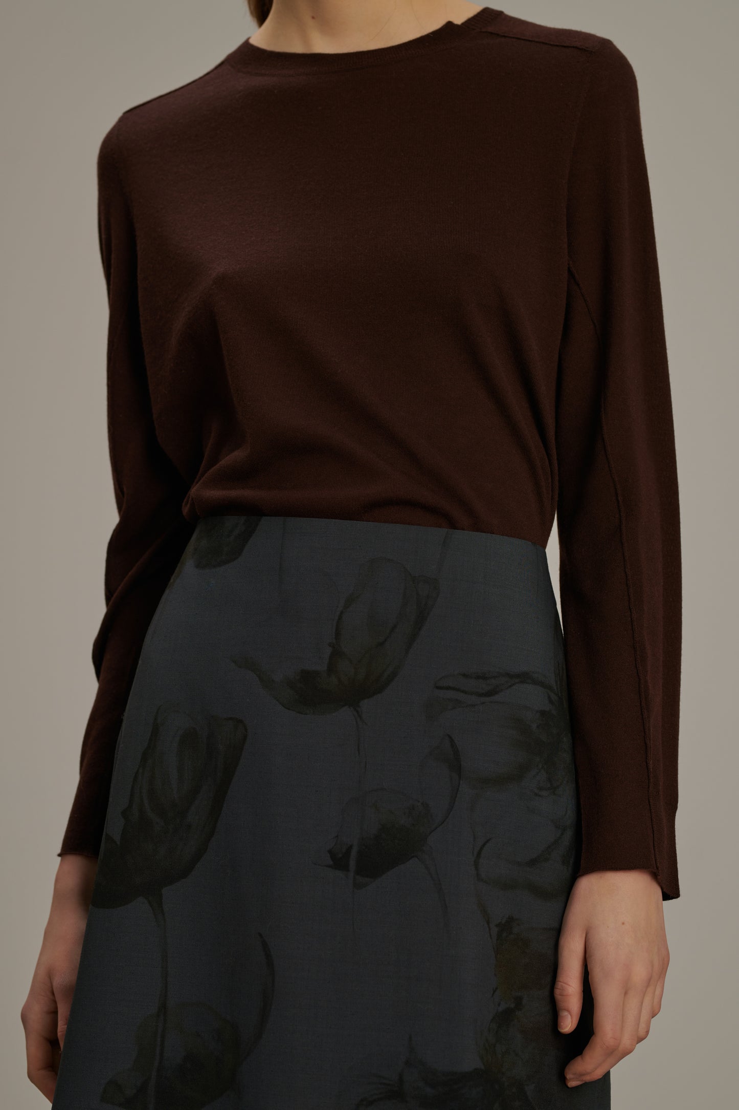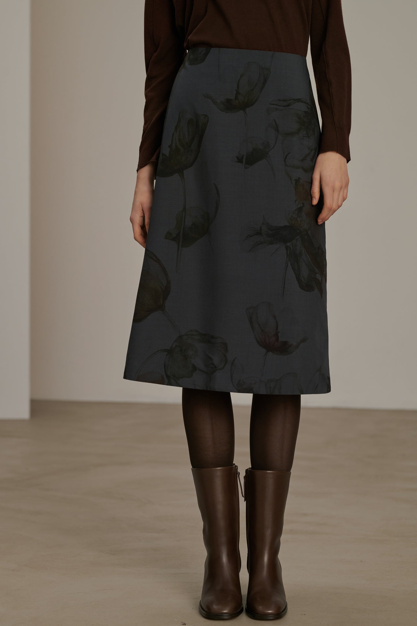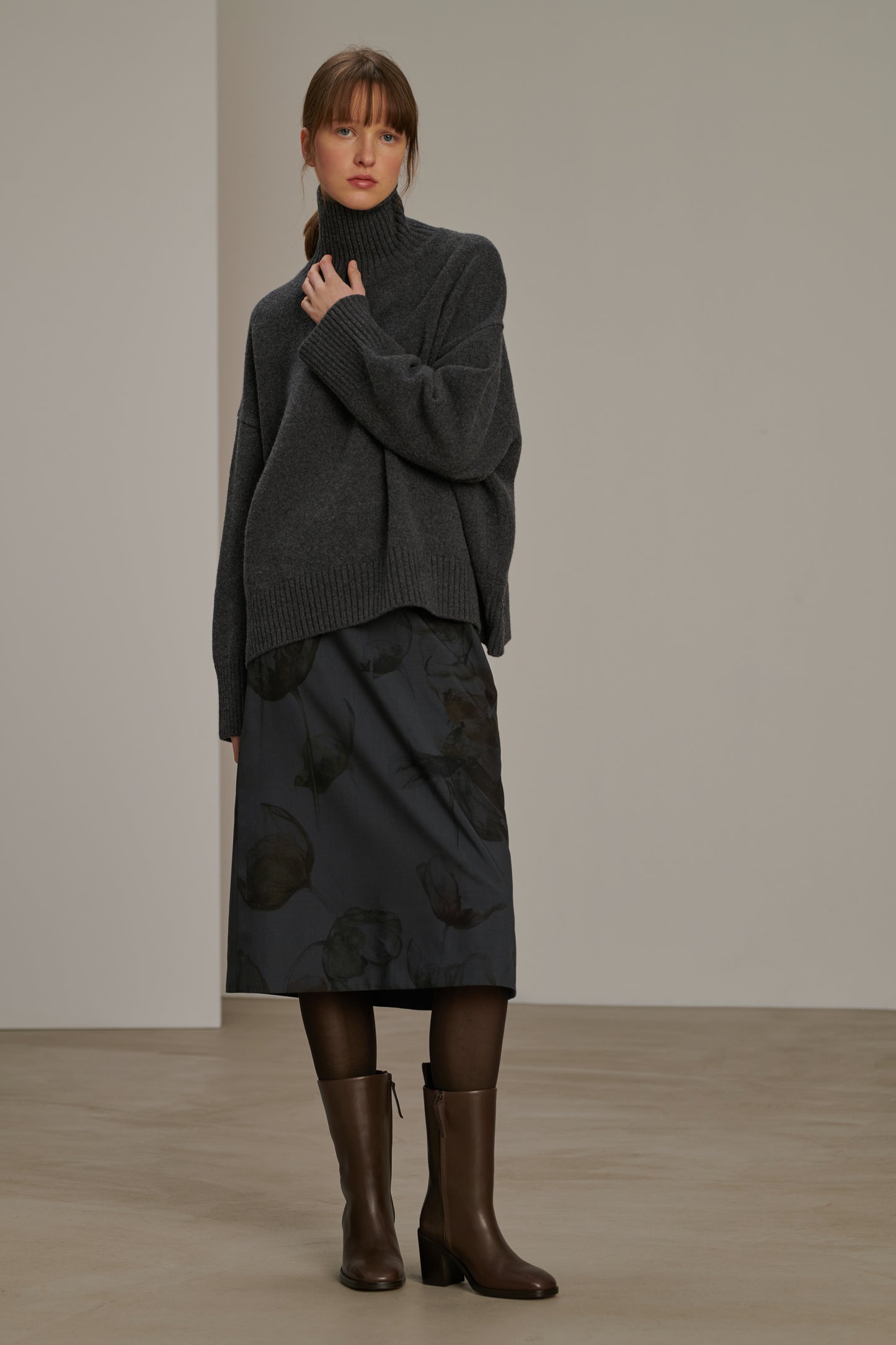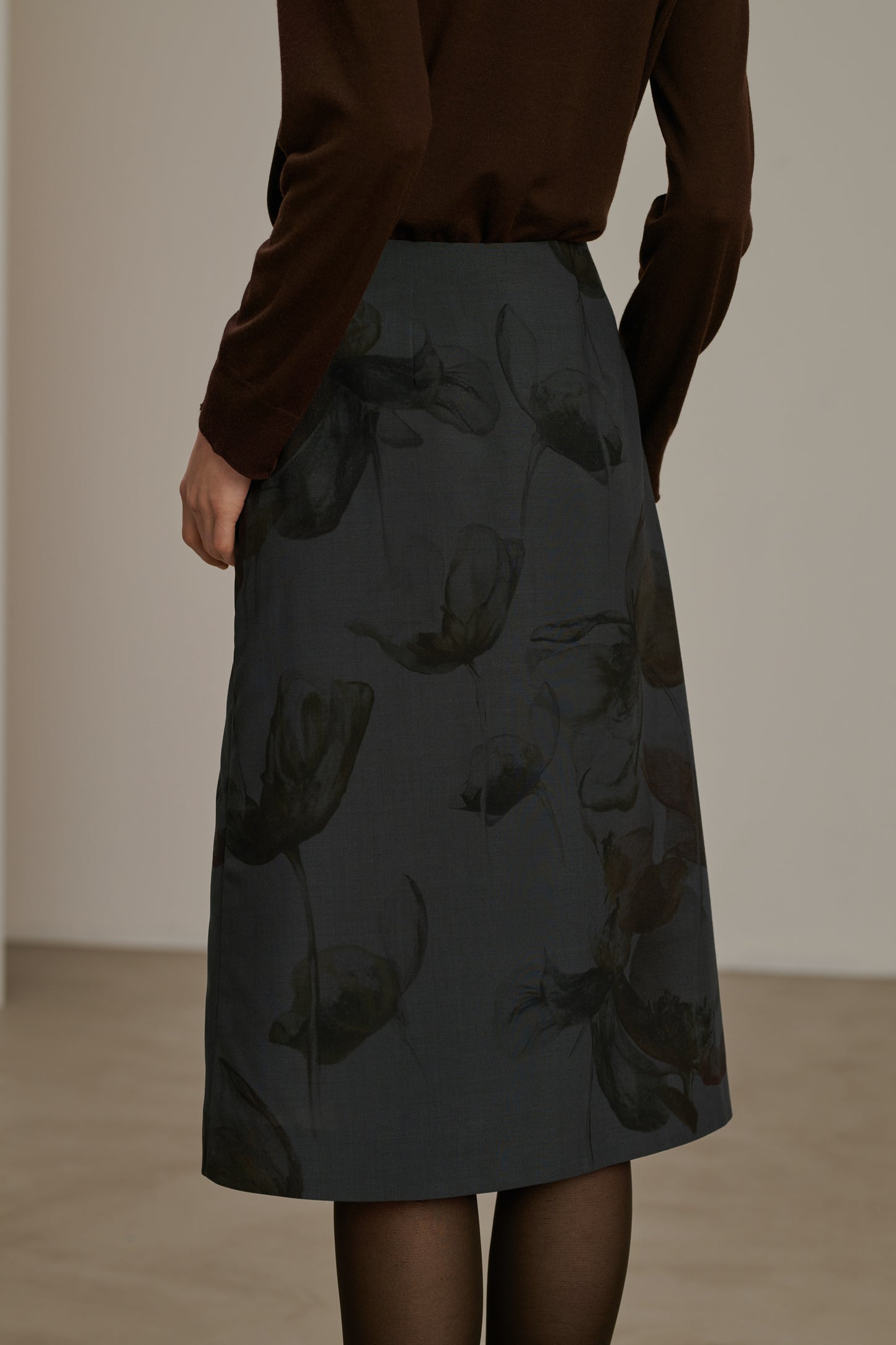 Falda de tela de lana estampada gris antracita