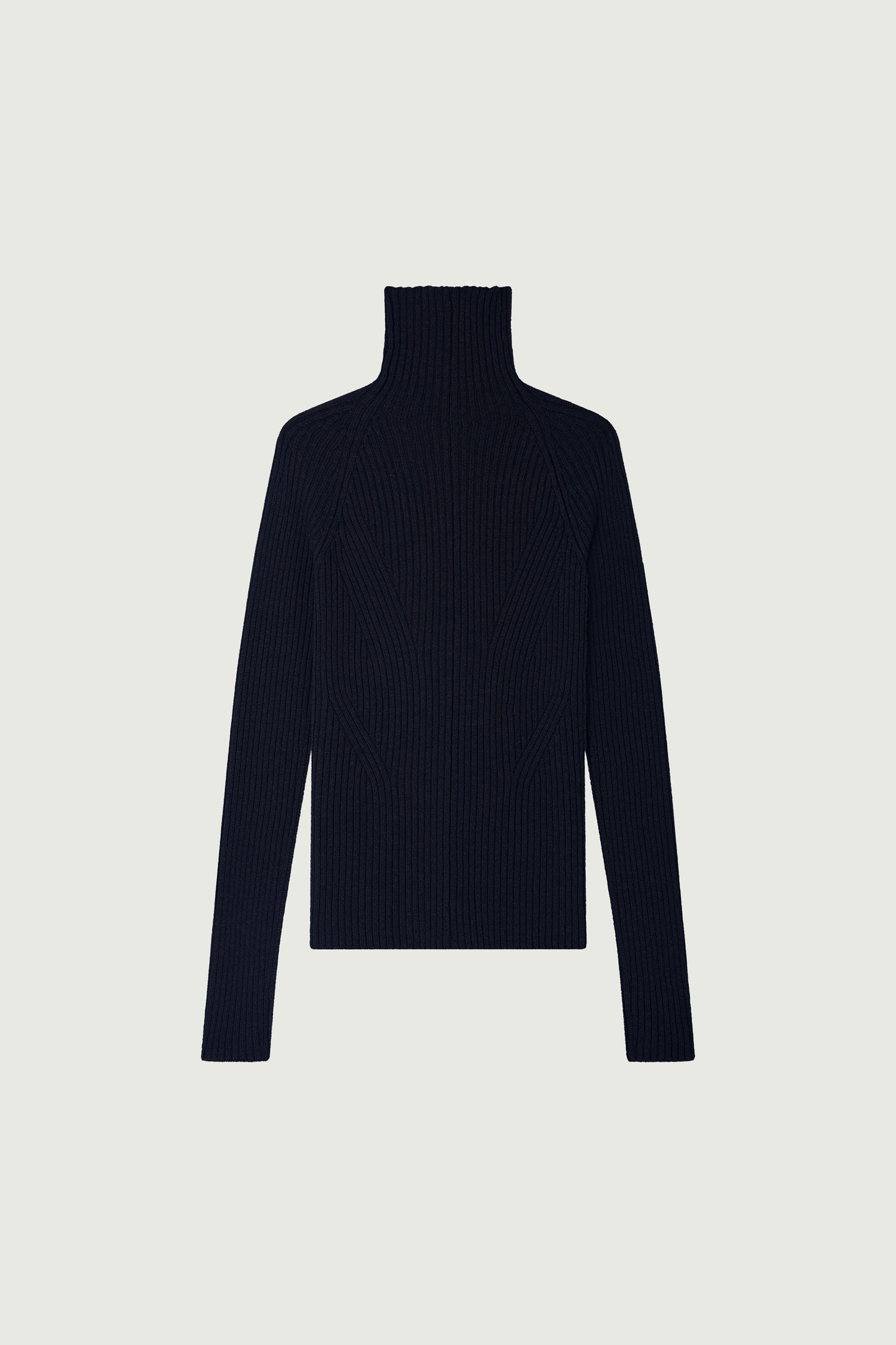 CAMILLE es un jersey de cuello alto, tejido en un hilo de lana merino. Un efecto de canalé resalta la silueta, mientras que las mangas largas pueden llevarse extendidas hasta cubrir el inicio de la mano, sobresaliendo ligeramente de la manga de un abrigo.
