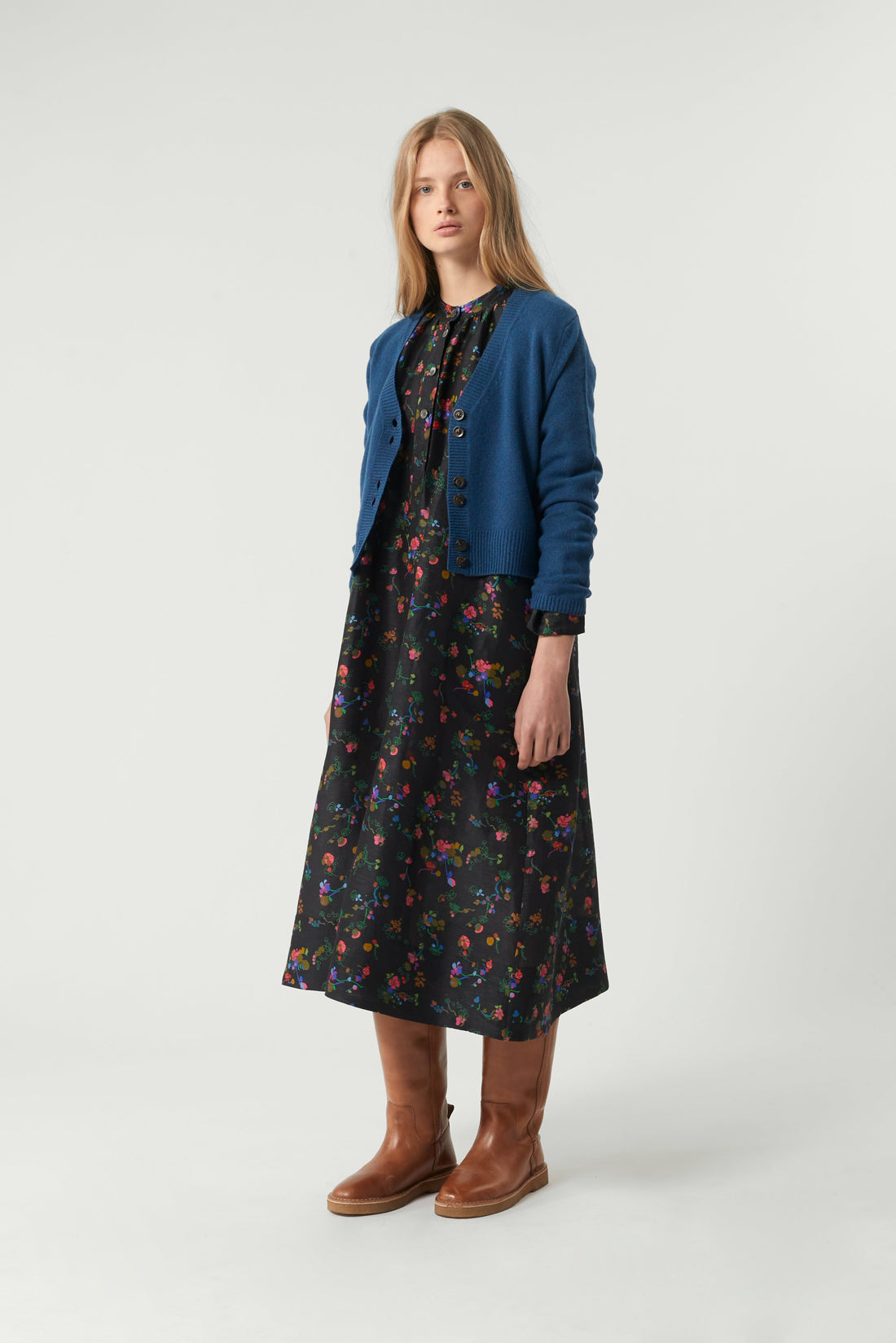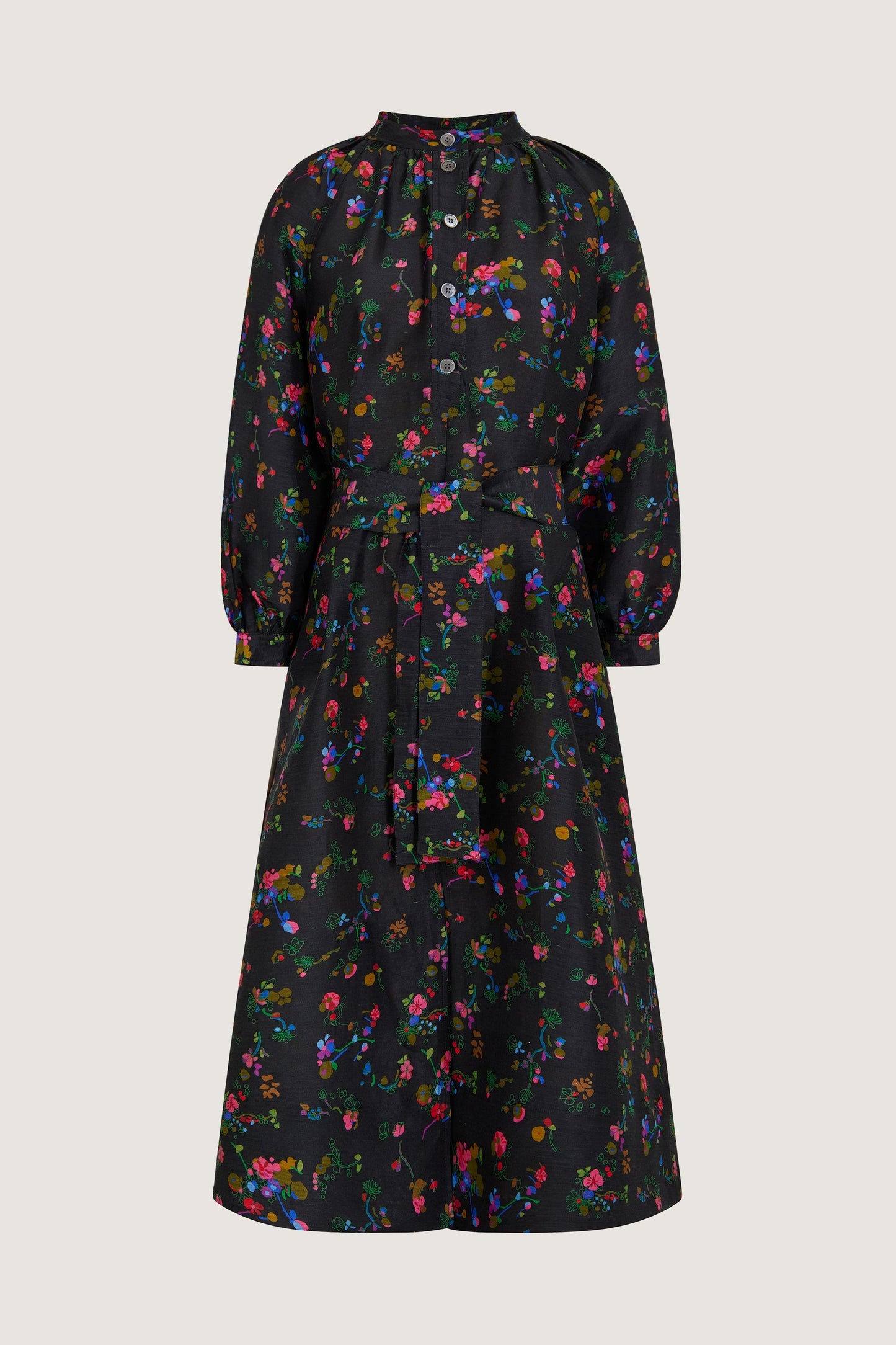 Vestido de seda y lino con estampado multicolor