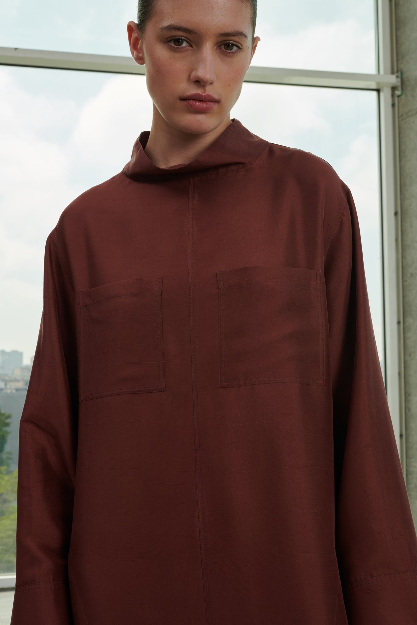 Vestido de cuello alto de seda de Dupioni frambuesa
