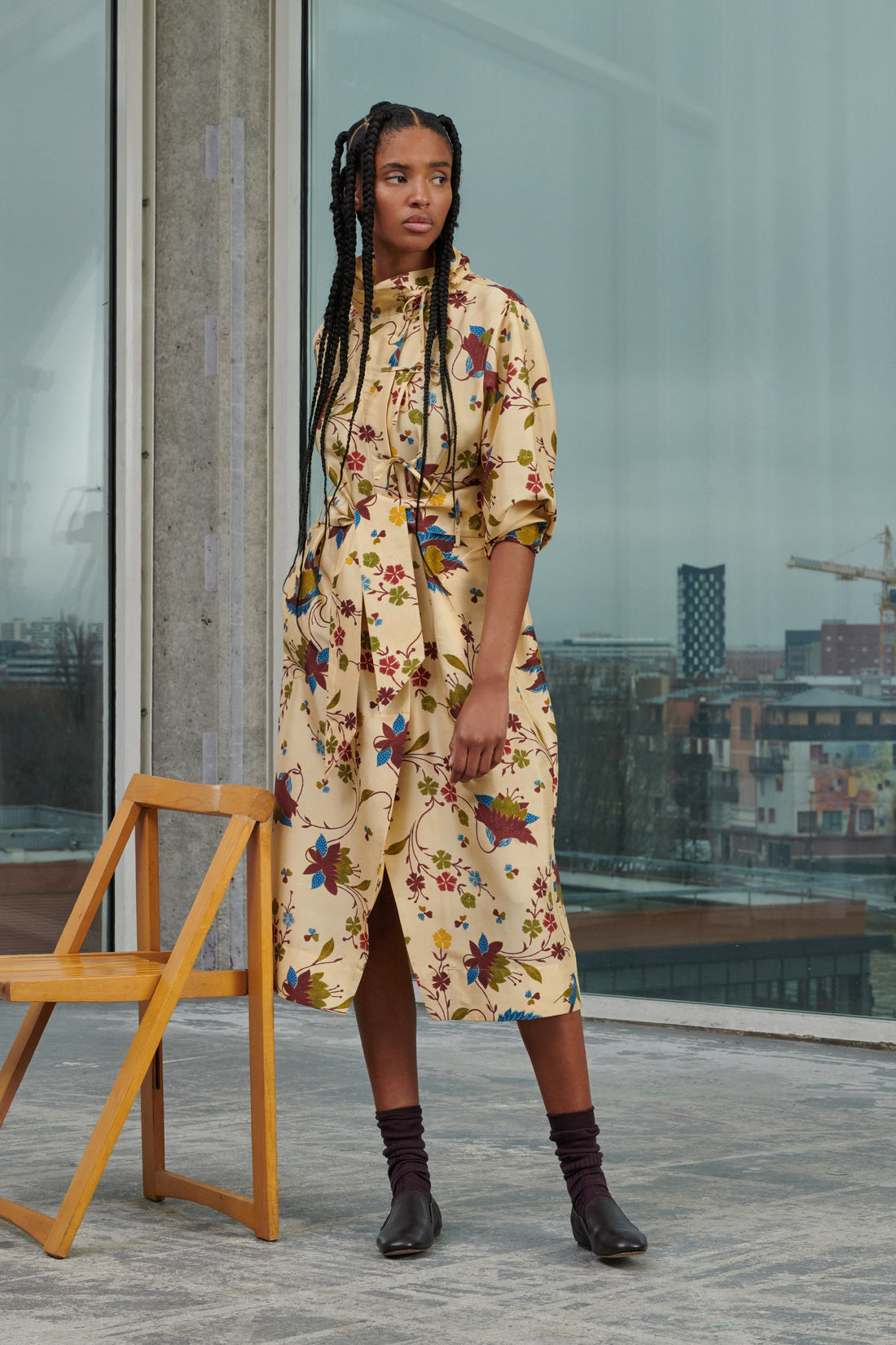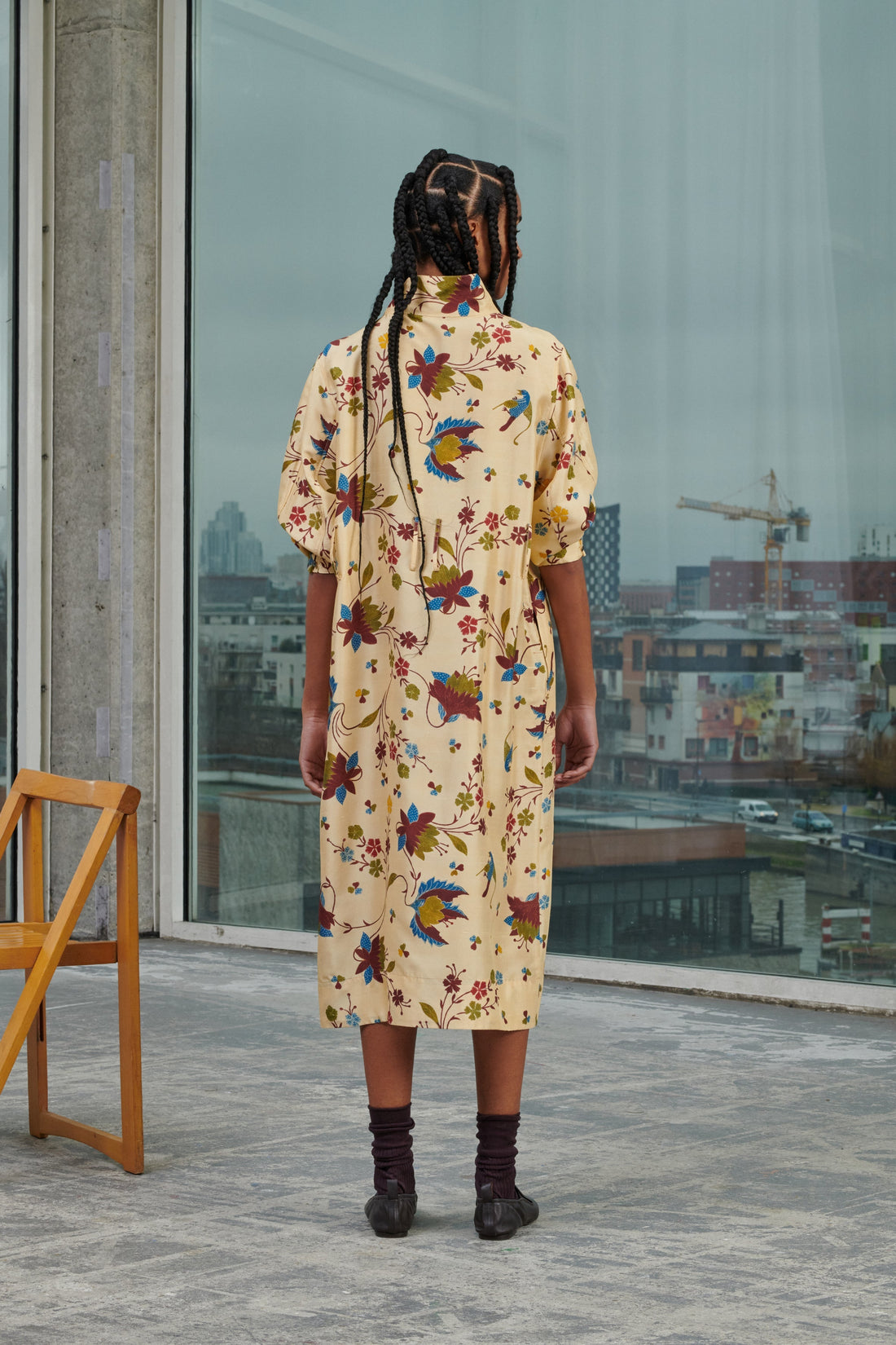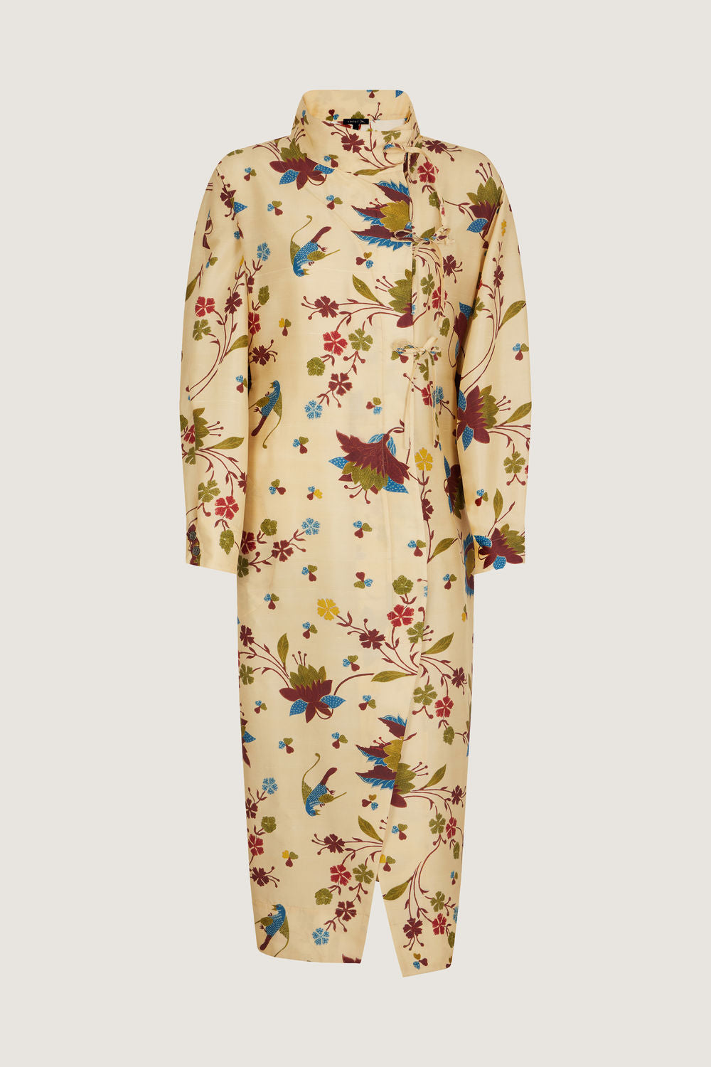 Vestido con cordones de popelina de algodón - Vestido largo y volumen recto, se puede llevar con o sin cinturón- Cuello ancho y bajo- Sistema de cordones decorativos- Botonadura oculta en el centro delantero hasta medio muslo- Manga larga ancha con sistema de botones en los puños- Abertura en la parte central delantera- Cinturón desmontable