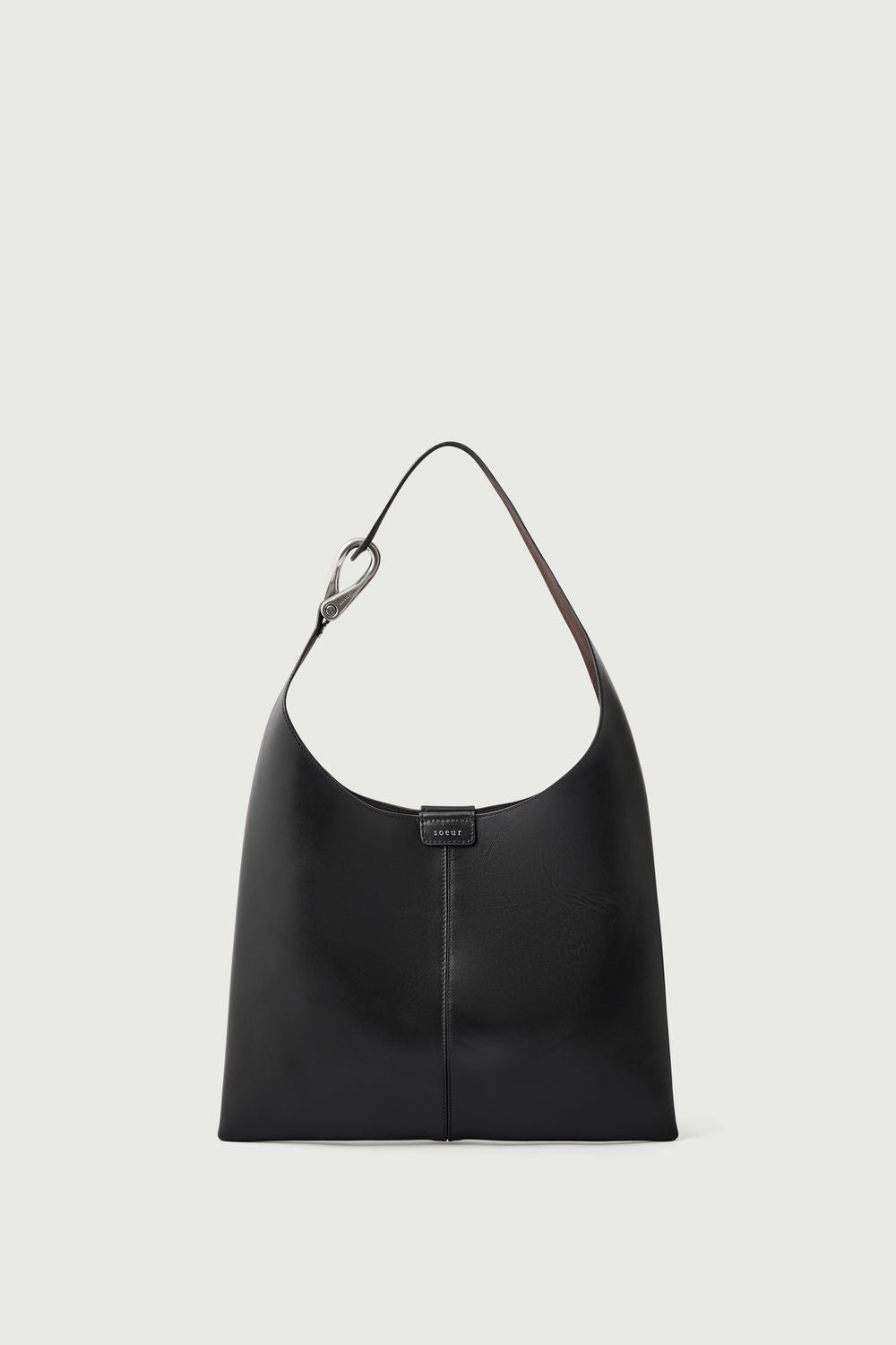 Bolso de cuero liso negro y pieza metálica plateada negro