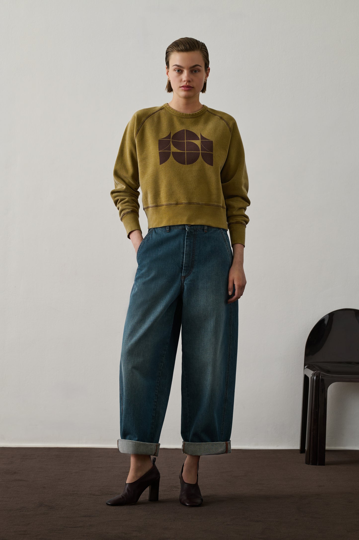 Sudadera con monograma "s" en felpa lavada bronce