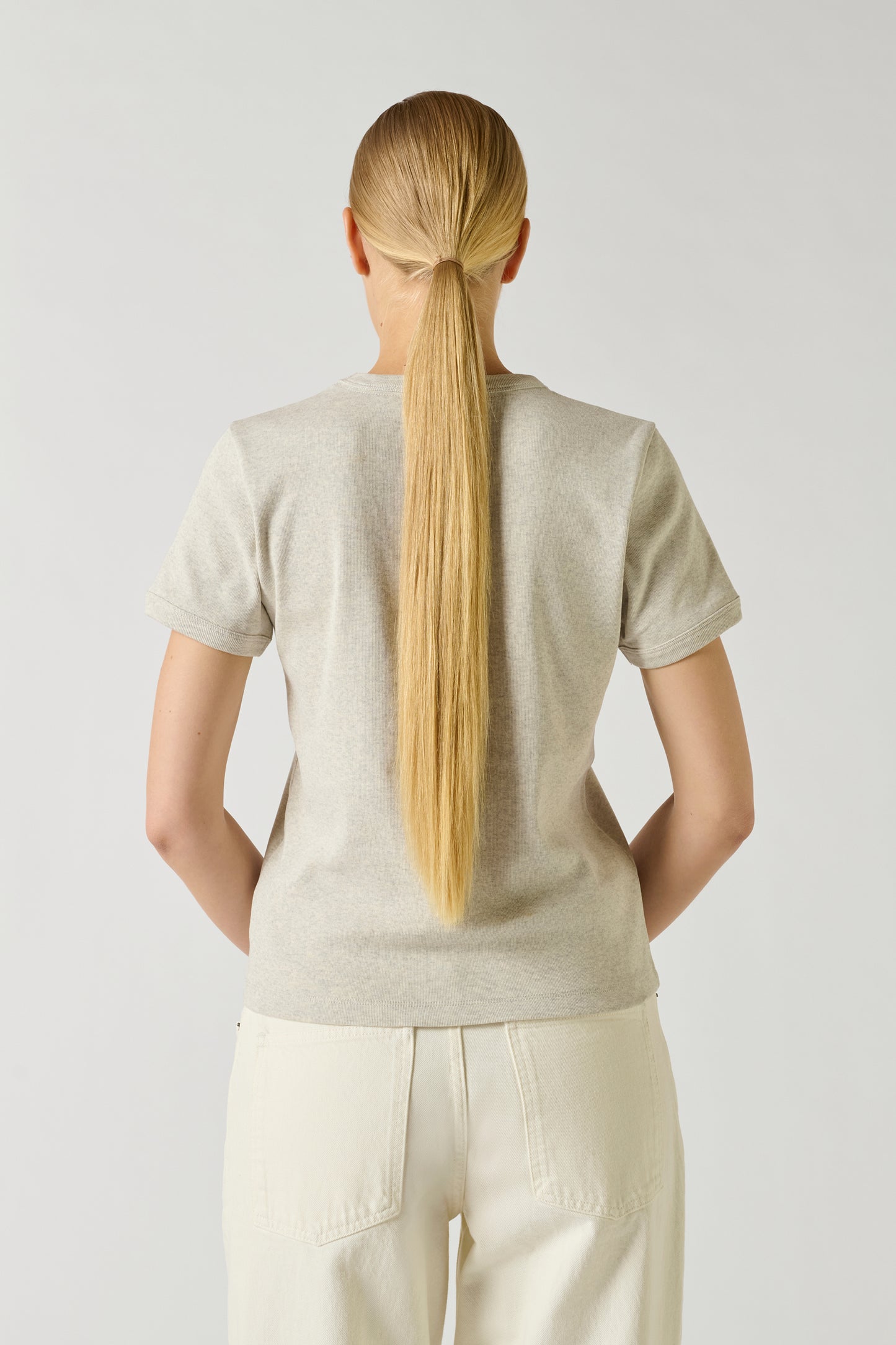 Camiseta de canalé con bordado gris jaspeado