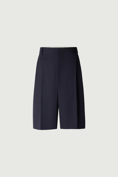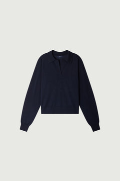 GIANI es una chaqueta tipo blazer de gabardina de lana virgen azul noche. Su volumen amplio y cuello de solapa recuerdan la sastrería masculina. Totalmente forrada, asegura comodidad y estilo.